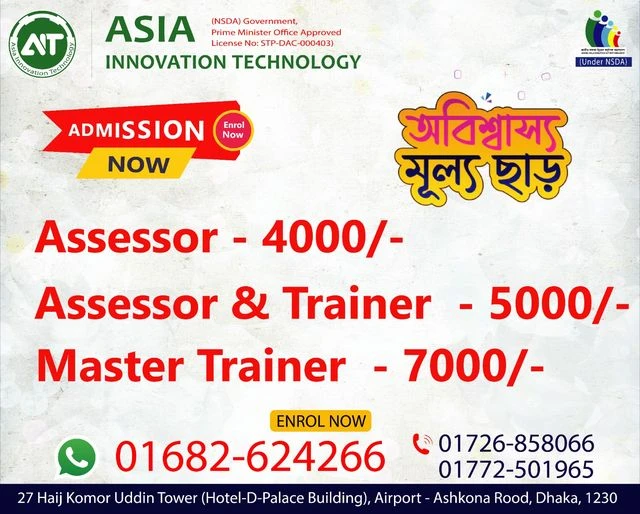 দক্ষ ও স্বীকৃতি প্রাপ্ত TVET ট্রেইনার হওয়ার পথ সহজ করে দিতে এশিয়া ইনোভেশন টেকনোলজি অফলাইন অ্যান্ড অনলাইন এ National Certificate In CBT&A Methodology